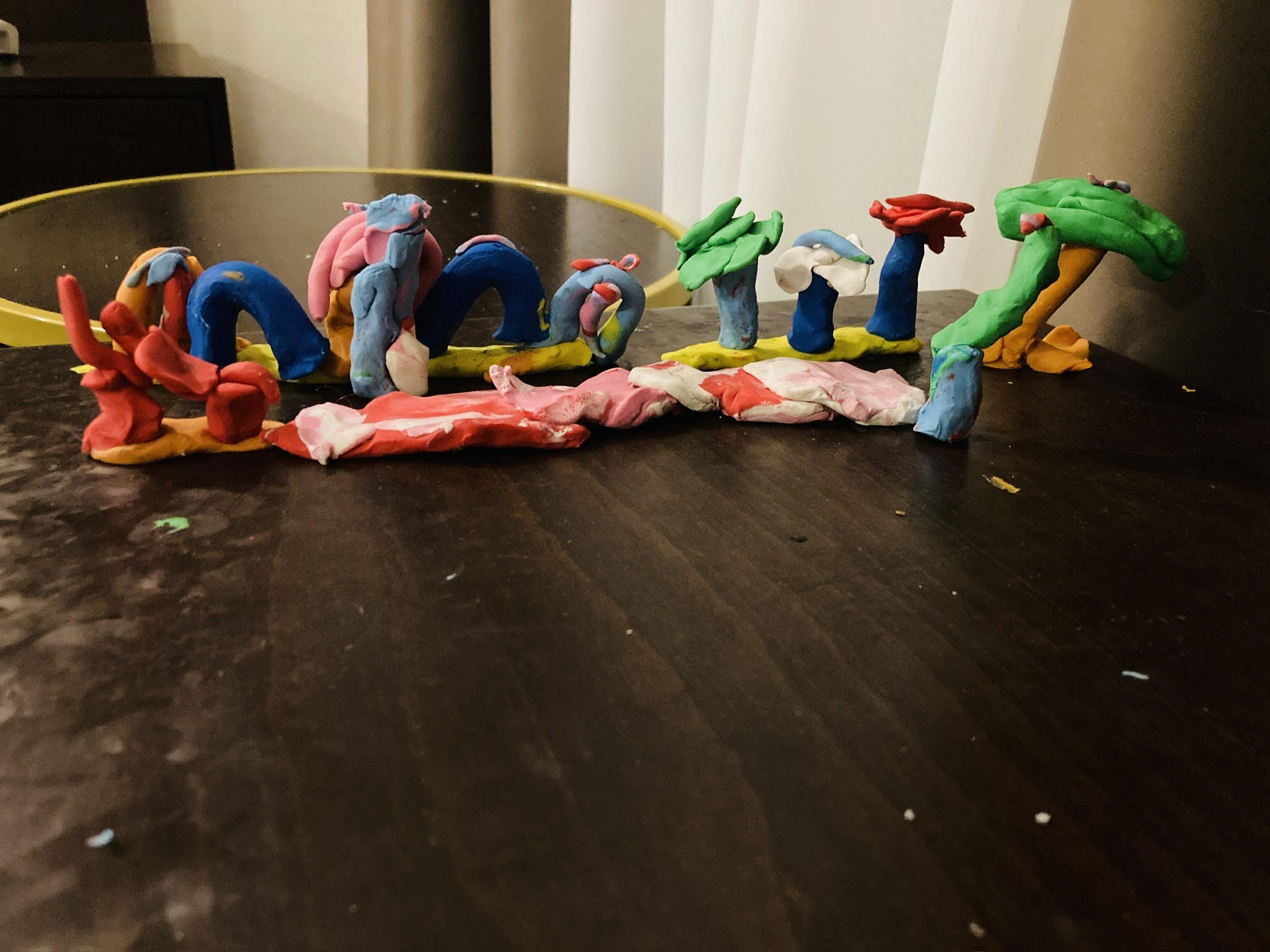 We spent Shabbat at the guesthouse, Jemal teaching the girls learning to make wine and his wife Manana teaching them to make dumplings. The rest of the time, they played with Elpiteh, the recently-born calf. The weather turned cold and rainy, and we didn’t want to burden his family with cooped up kids, so we spent the last two nights at a hotel. At a stationary store, we bought the girls modeling clay. The eldest took all of the pieces and created a landscape that included flowers, trees, mushrooms, and a car driving up a mountain road. Our days with Jemal’s family had entered her imagination. At that moment, I saw that this trip had given her and her sisters a taste of the flavors and sights that had animated my own family’s history. Somewhere, in the depths of their memories, we now shared the spirit of Georgia as one of our cultural legacies.