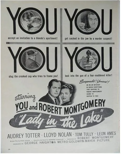 Indeed, MGM’s marketing department understood this better than the critics. Advertisements in Life Magazine promoted the film’s immersive promise: “YOU accept an invitation to a blonde’s apartment! YOU get socked in the jaw by a murder suspect! … YOU look into the gun of a fear-maddened killer!” The copywriters even gave “YOU” top billing.