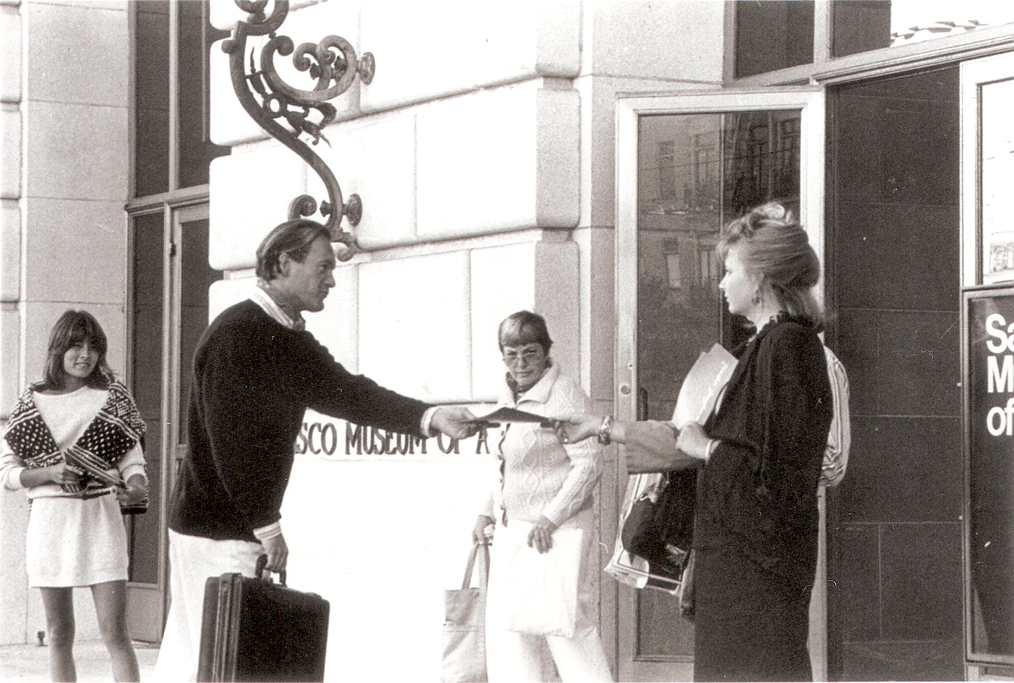 I made my “Cultural guerilla raid” on the SFMoMA on June 30-July 1 1984. The first day was the opening of the exhibition. The second was the date of the symposium… there were many important speakers including Clement Greenberg and Marcia Tucker from New York, Achille Bonita Oliva from Italy, and Peter Selz from California. Henry Hopkins was the SFMoMA Director. I entered the symposium after distributing my Manifesto and the contents of it was raised by several persons. Hopkins was very evasive and apologetic and vowed to be open to all races.