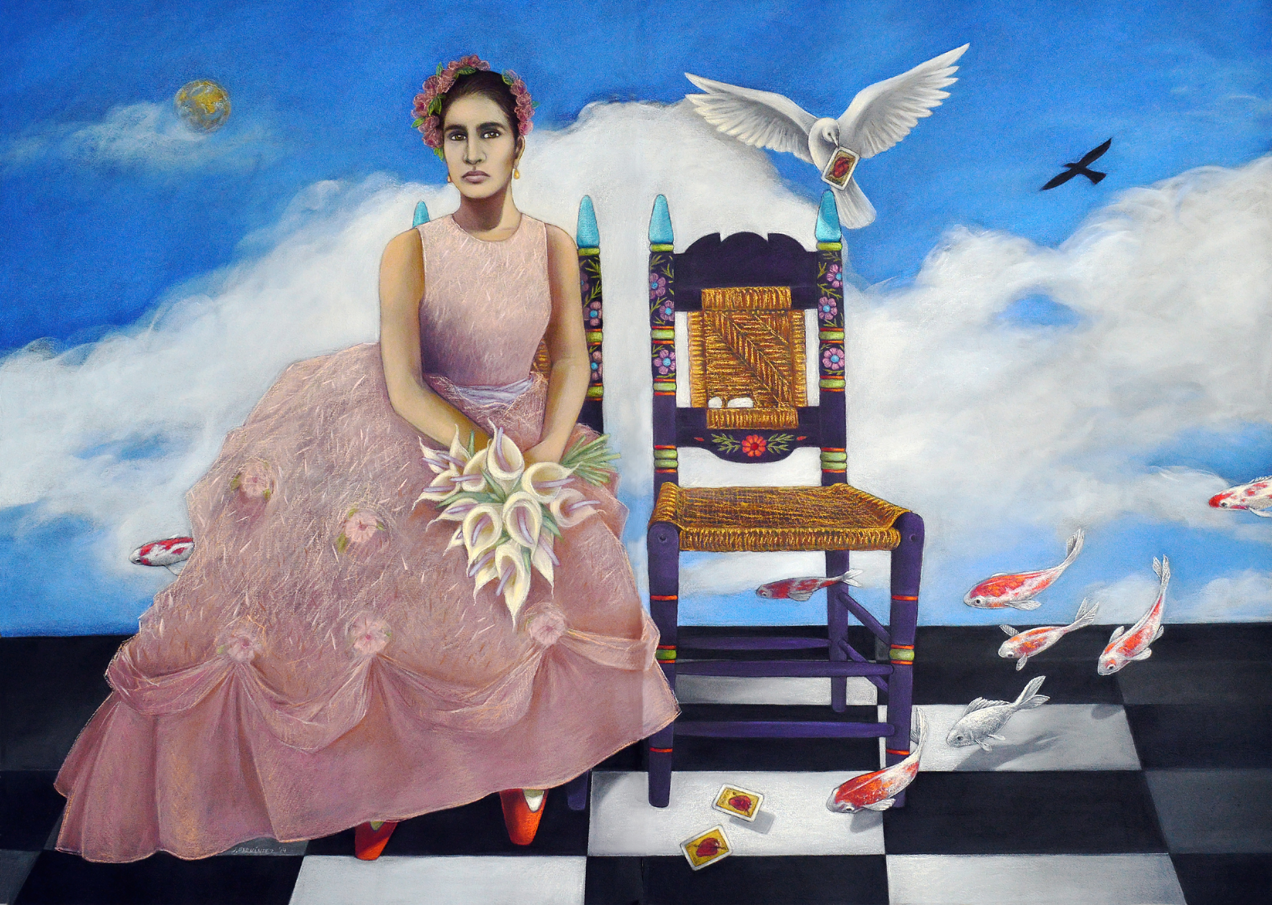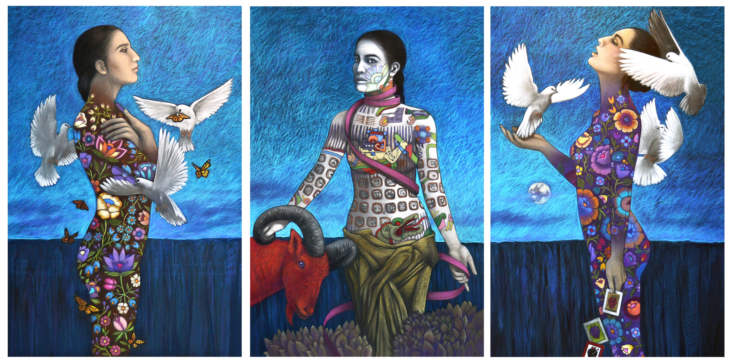 Born and bred in Los Angeles, Hernández launched her art career as the lone female member of “Los Four,” the seminal artist collective that was instrumental in bringing attention to the Chicano Art movement of the 1970s through a striking array of paintings, murals, and sculptures. Her masterful pastels depict surreal scenes of the archetypal Mesoamerican female that are often haunting, often sensual, and always emotionally captivating. Her works display an elegance of line and composition that harkens back to masters ranging from Mexico’s famed “Big Three” to the Pre-Raphaelites.