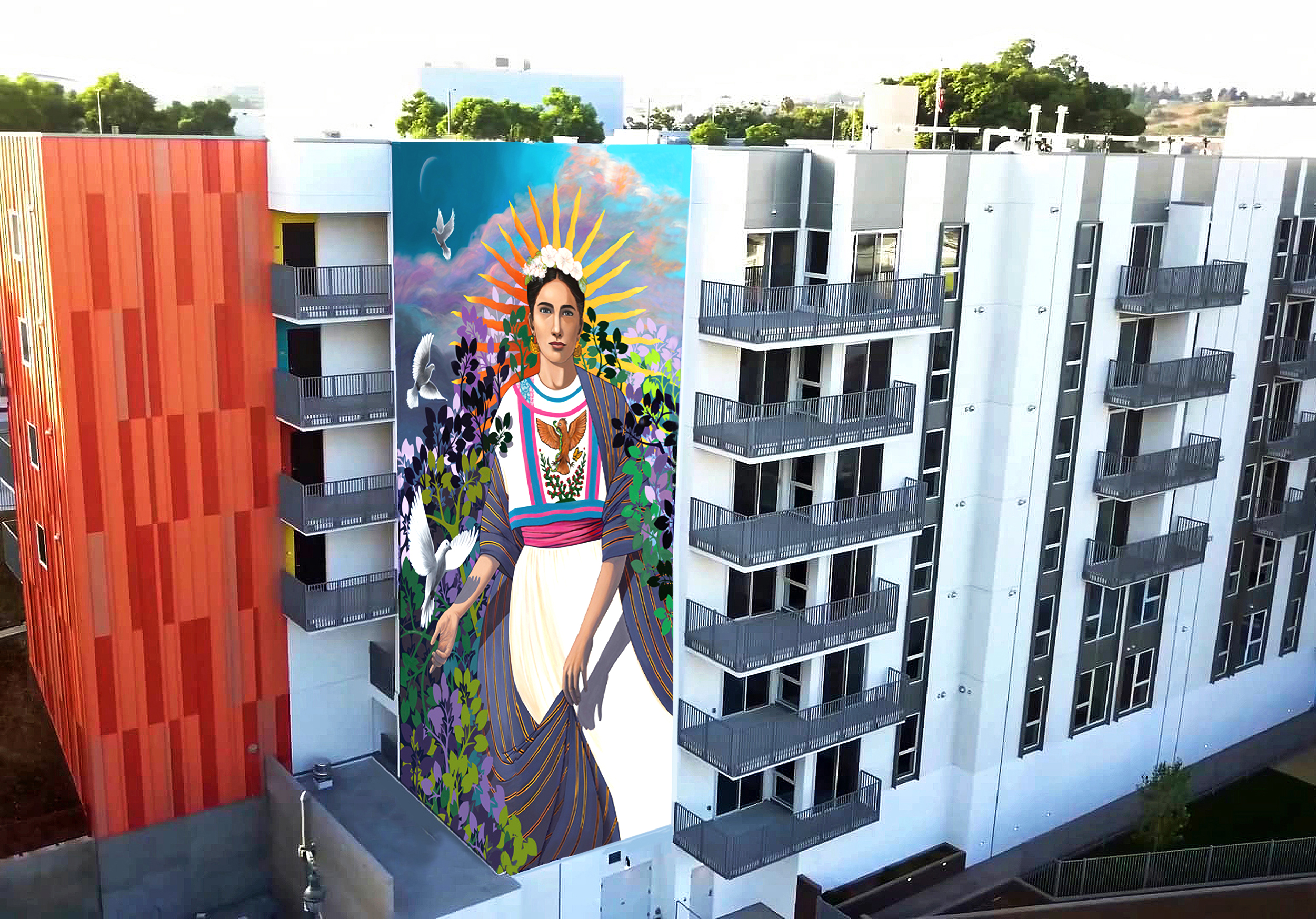 Over her 50+ year career, she has established a significant record of exhibitions and acquisitions of her work by major public institutions and private collections which include: the Museum of Modern Art, New York; the Pennsylvania Academy of Fine Art, Philadelphia; the National Museum of Mexican Art, Chicago; the Smithsonian American Art Museum; the Los Angeles County Museum of Art; the Blanton Museum of Art, Austin; the UCI Museum/Institute for California Art; the Cheech Marin Center for Chicano Art & Culture; and the AltaMed Collection. She has been the recipient of the prestigious Artist-in-Residence at the Center for the Study of Race, Politics, & Culture, University of Chicago; the City of Los Angeles Artist Fellowship (C.O.L.A.) and the Anonymous Was a Women Grant. In 2019, after more than 40 years, her artistic presence returned to downtown Los Angeles with a seven-story mural, “La Nueva Reina de Los Angeles,” at La Plaza Village one block north of El Pueblo de Los Angeles Historical Monument District. In 2024, she became the first artist to be given a major retrospective exhibition at the new Cheech Marin Center for Chicano Art & Culture.